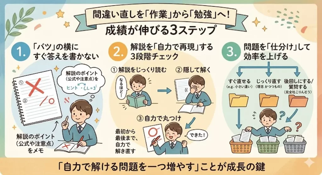 間違い直しを「作業」から「勉強」へ変えるための3ステップ