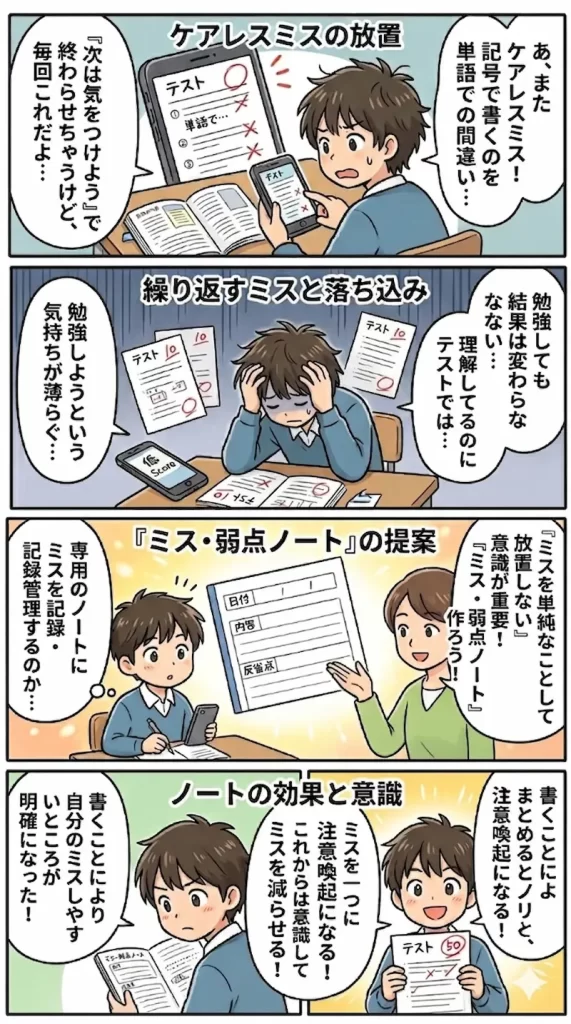 自分はミスが多いと感じたならばミス・弱点ノートを作成してみるのもひとつの方法です。