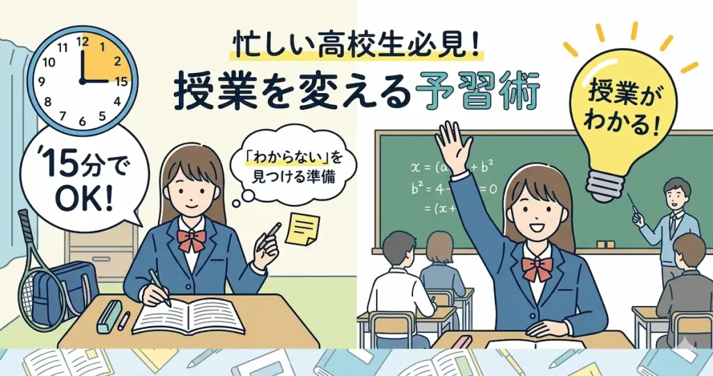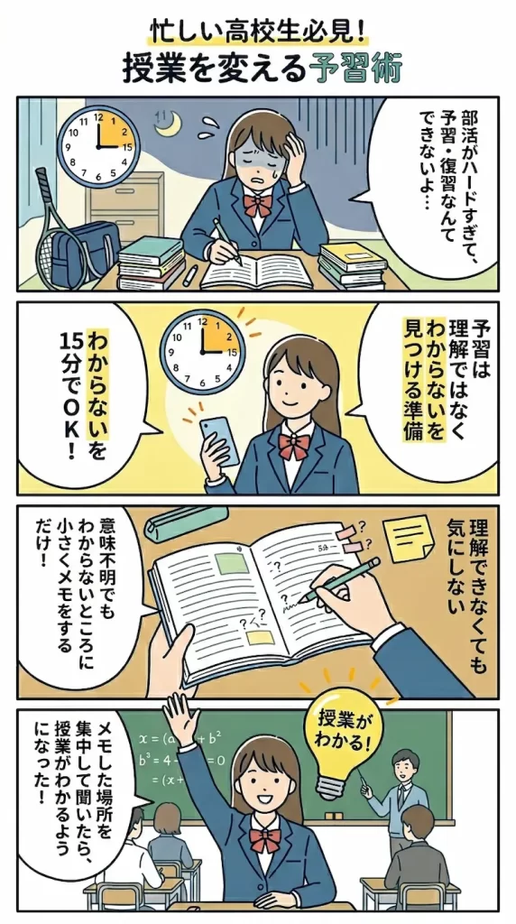 予習は習っていないことを勉強するのではなく授業の理解度を高めるための準備と考えてみてください。